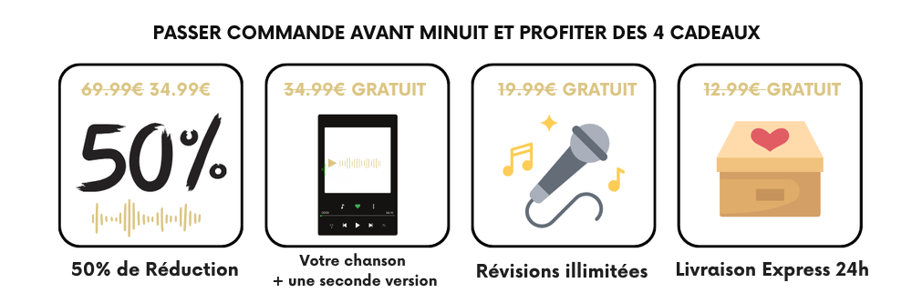 De plus, nous offrons jusqu'à 3 révisions gratuites, pour que votre chanson soit exactement comme vous l'avez imaginée. Si vous souhaitez ajuster une partie des paroles ou modifier certains éléments, notre équipe est là pour que tout soit parfait pour vous. 😊
